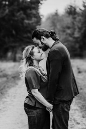 Chris and Anais have amazing chemistry and photographing them was so easy. We met at Lyminge Forest, Kent where the pine trees tower tall and the ferns provided a gorgeous setting for engagement photos. Chris and Anais live in France but I was able to photograph them (pre-covid) when they were over here visiting family and planning their Kent wedding. Unfortunately, Chris broke his leg a few weeks before our shoot but he was an absolute trooper and you'd never know from the photos that he could only bear weight on one leg!